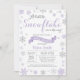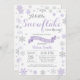 Vinterbaby showerinbjudan. Purpurfärgad Snowflake. Flickababy showerinbjudan. Inbjudan för vinterhelgdagbaby shower. Lila- och gråttsilversnöflingor. Vitbakgrund. Behaga klickar "skräddarsy den" knäppas och använder vårt designverktyg för att ändra denna mall för mer ytterligare customization.