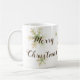 Festive Snowflake God jul Script Coffee Mugg. Perfekt mugg för en helgdag jul. Med vacker snöflingor på vit bakgrund och ett God jul-skript.