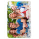 En julmagnet med gräns av slumpmässigt vitt snöflingor. Lägg till ett eget foto för ett speciellt helgdag memento.