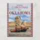 Den här helgdag har ett spektakulärt westernt foto med slitna cowboyskor sport ett par anpassningsbar som är gjord av mexikanska peso-sporrar, kompletta med "Yeha"-bokstäver och läderband. Röd text längst upp säger "God jul från "Oklahoma", där OKLAHOMA är tillverkat av en röd och svart buffel plaid mönster. Brören står på trä framför ett blått moln fyllt westerna himmel. En röd och vit snöflinga gräns gör kortet fetivt.