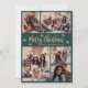 Modern Calligraphy-Grönt med enkel Elegant och Guld Snöflingor 5 Photo Collage God jul Script Helgdag Card. Den här sjutna, minimalistiska, vimistaktiga, fem (5) fotokortmallen innehåller ett fotokollage i söt, en del snöflake och säger "God jul"! Texten "God jul" hälsning är skriven i ett vackert handskript med bokstäver i guld på bakgrunden av grönt färg. På motsatt sida med din meddelandemall för hälsning med 3 små snöflingor en fotomall. Kort för hälsning till din familj och dina vänner i julens Julhelg.