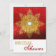 Guld snöflummel på det röda vinterbröllopet inbjudningskort för möhippan, som har en snöflinga från guld på röd botten med metallisk skina, sönderfallande struktur och en juvel. Denna utformning av personligen är en komplett mall för anpassade och ingår i en perfekt med bröllop för en vinter december eller jul bröllop. Observera att det inte finns någon äkta guld-folie eller juvel och att de alla är tryckta bilder.