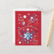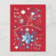 Snöflinga hälsning i rött, blått och vitt. Må ni ha mysigt och varm helgdag! Skål!