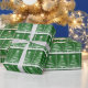 Vit snöflinga Julgran med en båge på gröntens bakgrund.