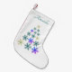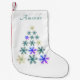 Snowflake-skriften Julgran Julgaffling. Vackert färglöst Julgran tillverkat av stort och litet färglöst snöflingor. Anpassa beståndet med namn.