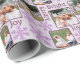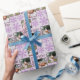 Skapa din egen anpassningsbar julomslutning papper med upp till tre av dina favoritfoton som ingår i den här lilan med visstiskt ljus och glitter lila snöflingor. Personligens julklapp kommer säkert att glädja vänner och familj lika mycket som familjens bilder överraskning över den ljusa bleken lavender lila bakgrunden. Designat i en halvdiagonal utskrift visas dina foton i tre storlekar, var och en med rundade hörn och ram i gräns av mörk plum lila. MERRY, BRIGHT och JOY skrivs ut i samma djupa lila för att lägga till lite textbaserat intresse i layouten. Den sista eleganten rör lila Faux snöflingor som är spridd på pastellbakgrunden i lilan, och skapar den här personligen för att omsluta glittren till pappra perfekt i julklapp.
