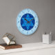 Härlig original- digital målning smyckar ansiktet av denna vägg tar tid på. Mot en subtil bakgrund av aqua & blått är snöflingor en högt stylized blått- & aquadavidsstjärnasitta inom en marinblå medaljong för runda. Krickatal för timmar & Minutes gör detta att ta tid på lätt att läsa.