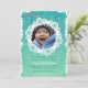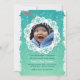Ett unikt fotokort för att fira en vinterfödelsedag. Den griniga, teala, snöiga bakgrunden har ett fotofönster med snöflake-märkre för ditt favoritfoto. Perfekt för alla åldrar eller gender.
