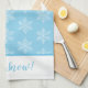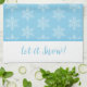 Den här vinterhandduken, ett säsong-tillägg till köket. En vit snöflinga mönster på ljusblå bakgrund och frasen - Låt det snöa!