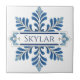 Snowflake pattern blue & white holiday custom name kakelplatta