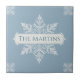 Snowflake pattern blue & white holiday custom name kakelplatta
