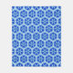 Fleece filt i ett geometriskt, bikakelfilt mönster i snöflingor i djup koboltblått och vitt, accentuerat med turkos