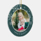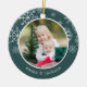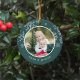 Festiv fotojulprydnad har ett favoritfoto på vardera sidan, inramat av vit snöflingor på grönten för vinjägare. Anpassa med en anpassningsbar på vardera sidan som visas med namn och året.