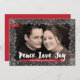 Ord "Kärlek. Fred. Joy." som återges i den moderna penselns kalligrafi plus en känslig snöflinga ram gör helgdag fotokortet extra speciellt. Anpassa med eget foto, eget meddelande och namn. Se till att du ersätter fotot med en egen bild. Photo kredit: Brierley Besök vår storefront för att se våra senaste konstruktioner.
