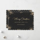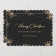 Skrämt svarta och guld-julkort med modern typsnitt och med snöflingor och fallande snö mot svart bakgrund. Anpassa enkelt dessa svarta och guld-snöflingor med din familj namn och ett budskap.