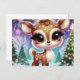 A sweet little reindeer sparkles under a snowy night sky, surrounded by frosted evergreens and twinkling lights. Her gentle expression and soft, glowing colors capture the pure innocence and warmth of the holiday season. A dreamy and heartwarming Christmas scene!