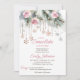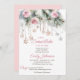 Småsnöflummen är på väg mot vinterduschvattenfärgen pastel rosa och grått gräs rosa ros ro guld snöflingor med kristaller flicka, redigerbar mallinbjudan till omedelbar digital nedladdning för vinterskaberdusch för babybabybabyduschen.