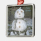 Festiv leende snowdam med årstidsskal som drunknade i gräs grenar. God jul är skrivet i blått skript. Originalfotografi av TamiraZDesign.