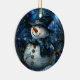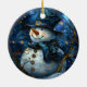 Add a cool splash of winter magic to your holiday decor with this charming snowman Christmas ornament. Featuring a cheerful snowman set against a rich blue faux stained glass background, this ornament captures the glow and elegance of stained glass without the fragility.