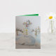 An original watercolor with a snowman, flower crowns and chickadees printed on the front of this greeting card, inside the background color is green. A great card to cheer someone, or just to say hello. Also could be nice for Christmas. painting by Kristina Anderson