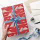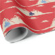 Den här festomslutningen papper med en vintage stil är perfekt för att slå oss i julklappar eller en present till din favoritsnöskopplare. Den här presentomslutningen har en mönster av snöskotrar, snöberg och fluffa moln i skuggor av blått och elfenben eller grädde som ställs mot röd bakgrund.