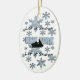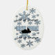 En grafisk design av snöflingor och en snömobil av konstnären/designern Charmaine Paulson på en julprydnad. Utsmyckningen har texten "Låt det snöa New York" och mallar för din anpassning.