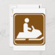 Vägskylt och skylt över motorvägar i internationell som ger råd om fritidsanläggningar, särskilt snöskoppling.