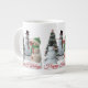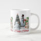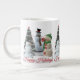 Julgran dekorerad av tre SnowPals på en vinterdag längs en snödriva med God Jul som hälsning, en fin present till andra eller uttryck God Jul till andra med denna roliga vinterdesign.