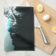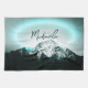 Snowy bergsmystisk blå neonljusmonogram kökshandduk