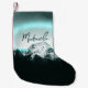 Snowy bergsmystisk blå neonljusmonogram liten julstrumpa