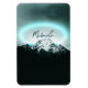 Snowy bergsmystisk blå neonljusmonogram magnet