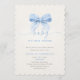 Make your baby shower announcement unforgettable with an invitation that combines adorable design and practicality. The baby blue coquette serves as a lovable centerpiece, drawing attention while keeping event information accessible. This invite is more than just a card—it’s a preview of the happiness awaiting your family, perfect for sharing your joy with others. Its distinctive look will leave guests eager to join, ensuring a warm and welcoming start to your celebration.