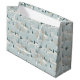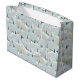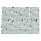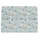 A snowy Christmas village on a soft blue background with modern minimalist houses and trees.