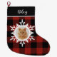 Julfoto Stocking: Håll en personlig på din mantel med den här julfoto-lagret som innehåller den klassiska röda och svarta buffel som pläderar mönster och färdigt snöflingor. Lägg till ditt katter-foto och namn för en anpassningsbars skull för att fira julhelgen med stil. Perfekt för att hålla små gåvor och behandlingar. Den här mysiga djurtätheten ger charm och värme till din juldécor.