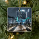 Holiday season in Buffalo, NY as the snowy night is filled with dazzling lights at Canalside.