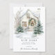 Share your joy this season with this Snowy Cottage Christmas New Home Announcement Card. Featuring a beautifully illustrated watercolor house surrounded by evergreen trees, snow-covered steps, and festive wreaths, this design perfectly captures the warmth of celebrating the holidays in a new home.
