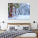 En serenvinter-scen uppträder i en skog täckt av snö. Ett stort, myrbildat träd med en rödbrun bark står på framträdande plats i förgrunden och grenar närmar sig himmel. Träd är förtjust i en dammsuga av färskt snö, vilket ökar dess stora närvaro. Bakgrunden är fylld med en tät skog av träd, deras grenar lastad med snö, som skapar en mjuk, eterisk atmosfär.