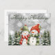 Gör ett fantastiskt påstående den här julhelgen med det här söta Glad helg-vykortet med två vattenfärgade snögubbar med hattar och halsdukar.