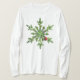 Vackra julskjortor med ett kollage av gräs grenar och en röd julklapp som bildar en söt snöflake med snö som täcker en del av grenar.