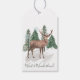 Snowy gräs träd, hjort Juletiketter Presentetikett