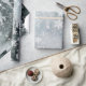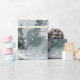 En helgdag vattenfärgad elegant som omsluter papper med en vinternatt himlar i en snöskog i bergsområden med stor och liten detaljrik snöflingor.