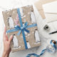 Penguiner omringade av snö på Kraft papprare julklapp.