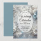 Celebrate your love with the timeless beauty of winter in this elegantly frosted wedding invitation. Featuring delicate white and icy blue florals, shimmering silver leaves, soft feathers, snowflakes, and subtle sparkles, this enchanting design evokes the magic of a snow-dusted wonderland. Perfect for winter weddings, holiday ceremonies, or any romantic event set against a frosty backdrop. The soft gradient center offers ample space for your custom wording while the ornate border creates a luxurious frame. A stunning choice for couples dreaming of a winter fairytale.