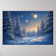Snowy Pine Forest Under A Starry Night Sky 🌙 Warm Poster