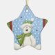 En polar är försedd med en platta av halsduk och grönt och vita strumpor.
