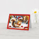 På framsidan av detta julkort finns en vacker och festlig ekorre som bär en julhatt, mot en snövåg utomhus baksida med varm tvillinring av ljus i avstånd. Det verkar som om ekorren, fullt av personlighet, med glädje förbereder sig för helgdagarna, omgivna av ljusröda julprydnader i snö. Meddelandet "God jul" skrivs i elegantens svarta skript överst och lägger till en varm Julhälsningar. Ett fet rött gräns med lekfulla gyllene accenter på scenen, vilket förbättrar kortets festliga charm. Detta kort är en perfekt för naturen och djur älskare, vilket ger en känsla av stollig och helgdag glädje.