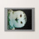 Jigszawapussel med ett nära skott från porträtt av ett Snowy Uggla.