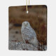 Snowy uggla sitta vid sten julgransprydnad keramik