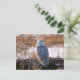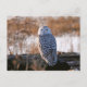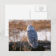 Foto på en snövinkning i uggla. Uggla ligger sitta på en biet av drivträ på stranden omgivna av torkad vegetation. Uggla bild kan anpassas med din egen text på valfritt sätt.