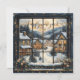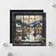 Snowy Village Window Scene with New Year Greeting Julkort